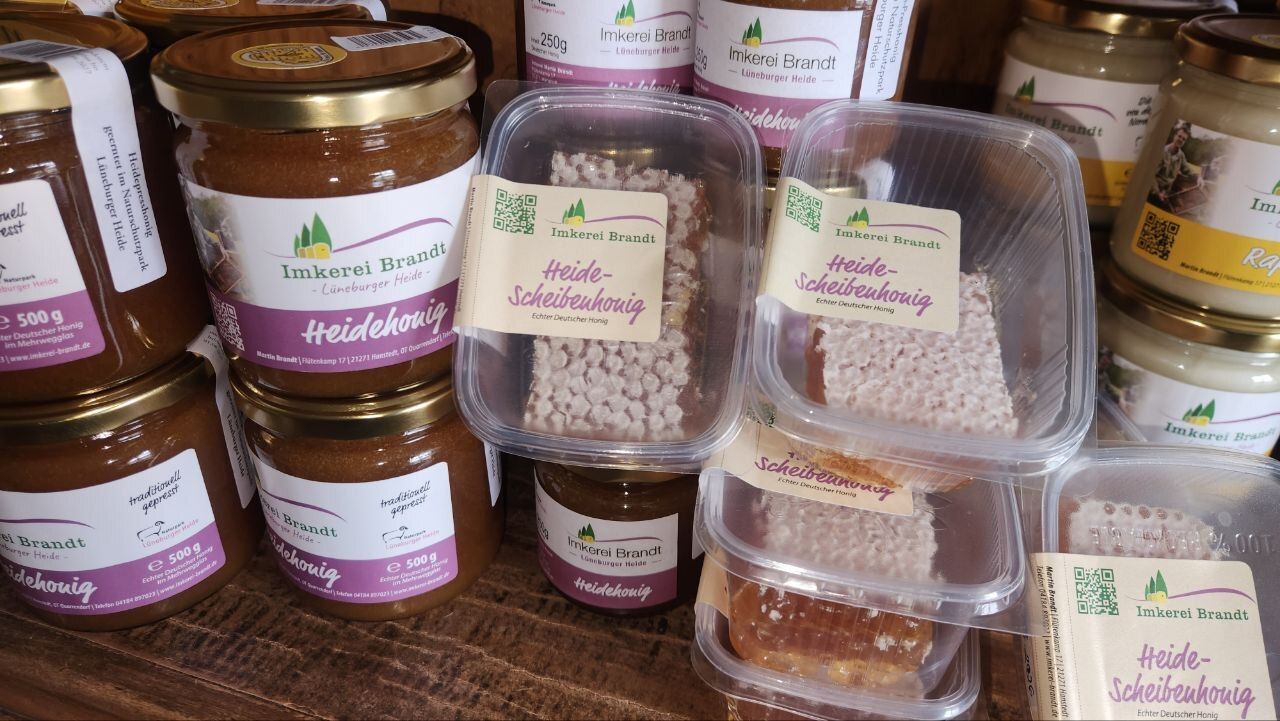 In diesem Jahr konnten wir herrlichen Heide-Scheibenhonig ernten. Beim Scheibenhonig wir die hauchdünne, frisch ausgebaute Wabe mit verzehrt. Diese ist ausschließlich mit Heidehonig gefüllt. Scheibenhonig ist das teaditionellste Lebensmittel in der Lüneburger Heide.